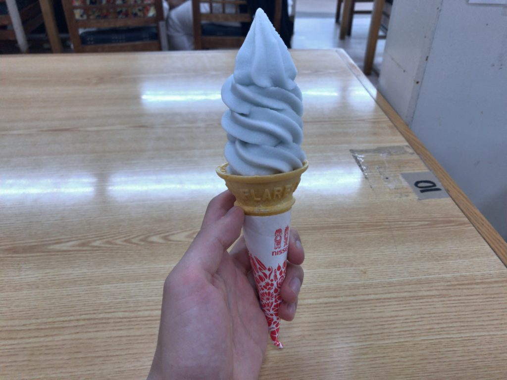 バスをぎりぎり逃したので次の便を待つ間、最高に魚介臭いお土産屋に入ってラムネソフトを食べた。