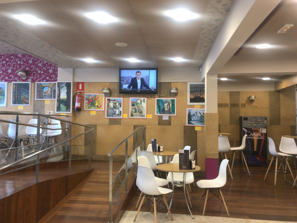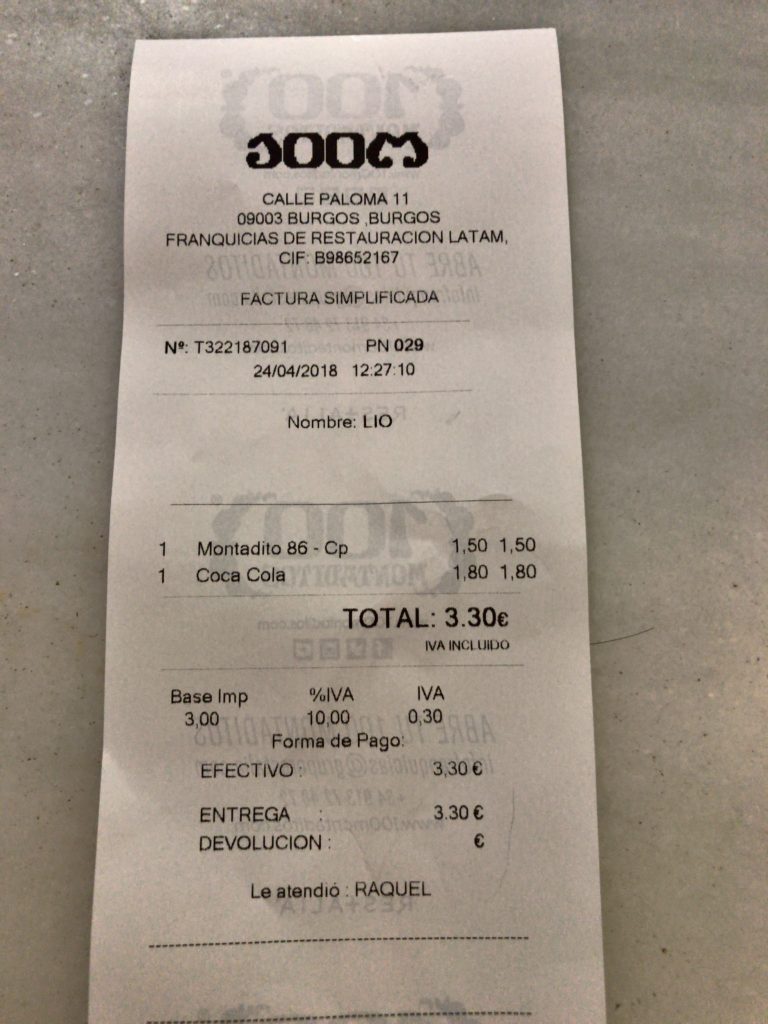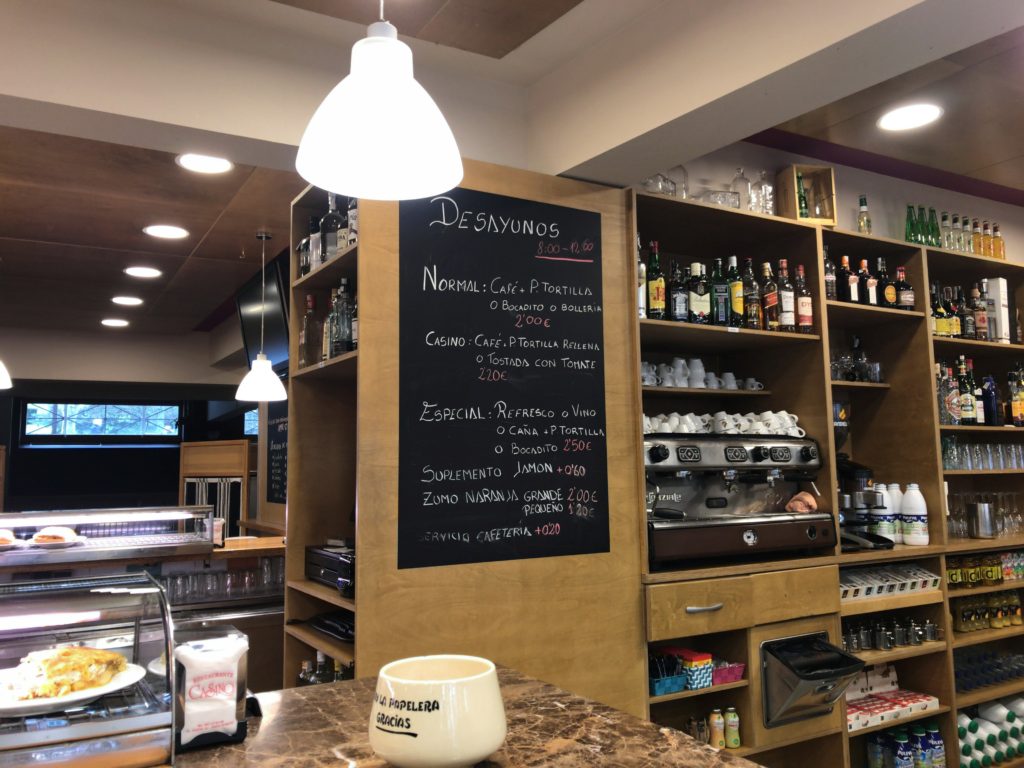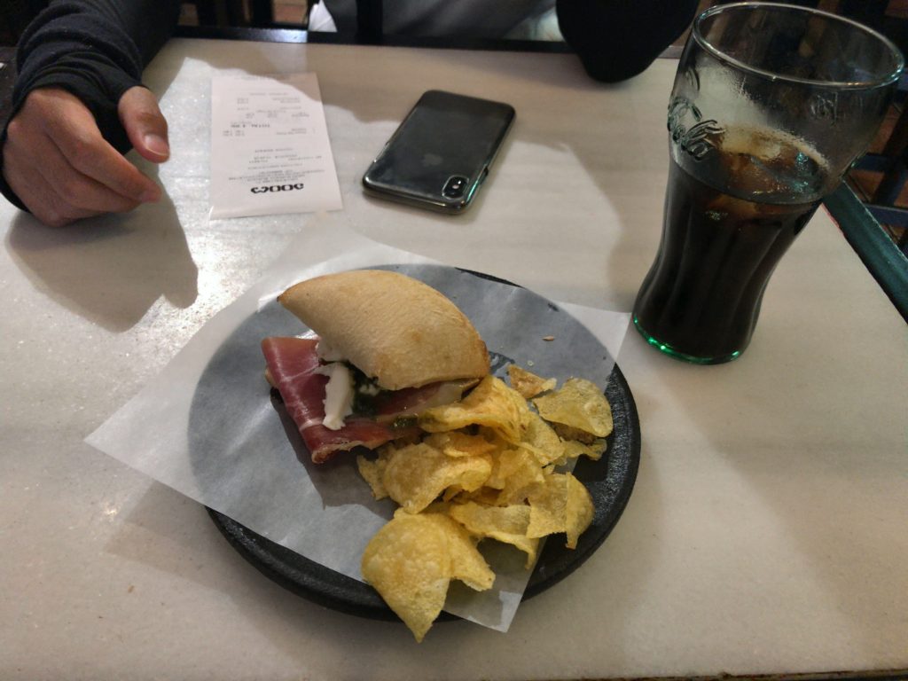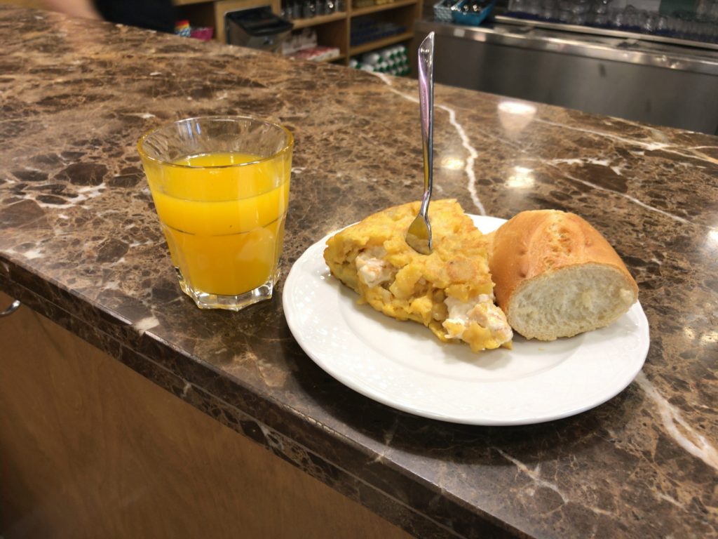 カジノというメニュー+スモデナランハを頼んだがなぜか2ユーロだけ取られてノーマルメニューになった。でもフンがオレンジとカフェコンレチェ(定番のミルク入りコーヒー)をチェンジしようとナイスな提案をしてくれた。