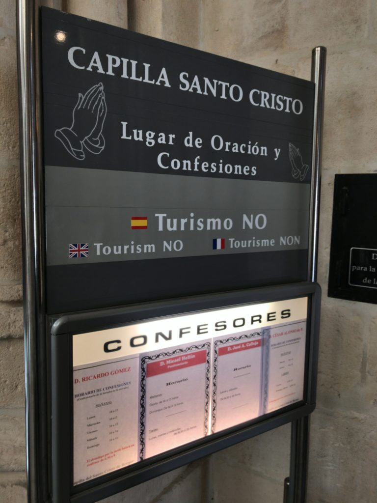 ガラス扉の奥に独特の雰囲気を感じさせる礼拝堂があったが、観光客禁止のミサ中だったので入ることはなかった(写真撮影も禁止だった)。いくら巡礼者とはいえ、教徒でもないし、地元の人にとって外国人なのは間違いないわけだから。