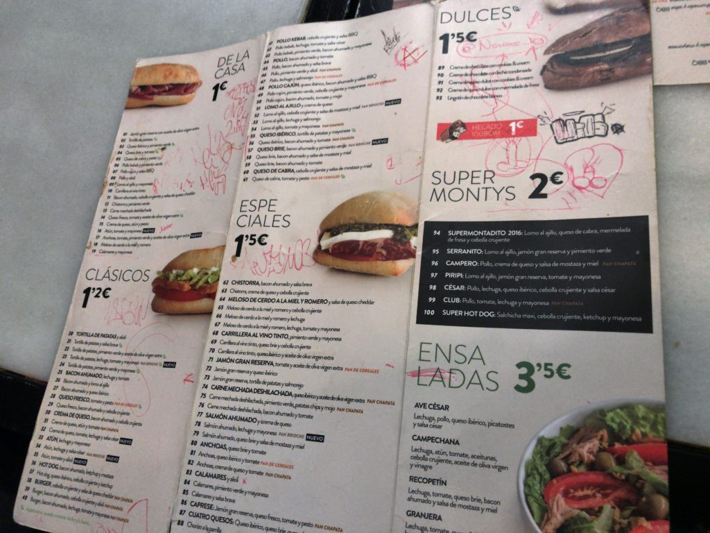 お昼時なのに開いているのはバルばかりでレストランは全然。開いていたとしても高級なお店ばかりなので、朝見かけた安いハンバーガー屋に行くことにした。