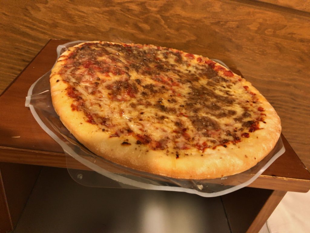 散々迷ったが、ホテルにレンジがあったのでピザを購入した。