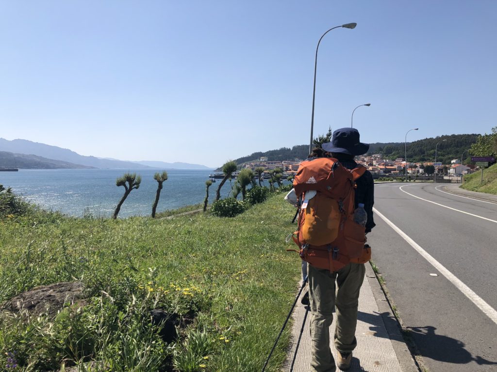 砂浜を歩く巡礼者もいたけど、散歩をしている地元のおっちゃんたちが、もう一つ上の道だよと教えてくれた。