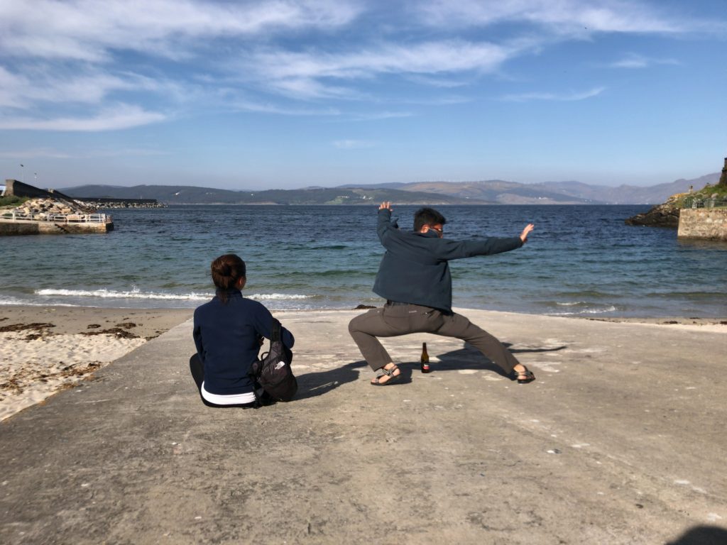 そして前に出て黄昏るえりこさん。バスでフィステーラにたどり着いた人たちとは違う感動があったことだろう。