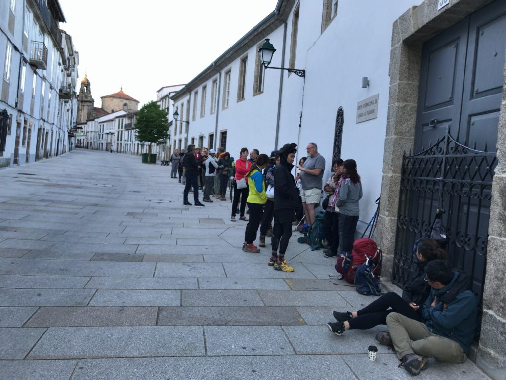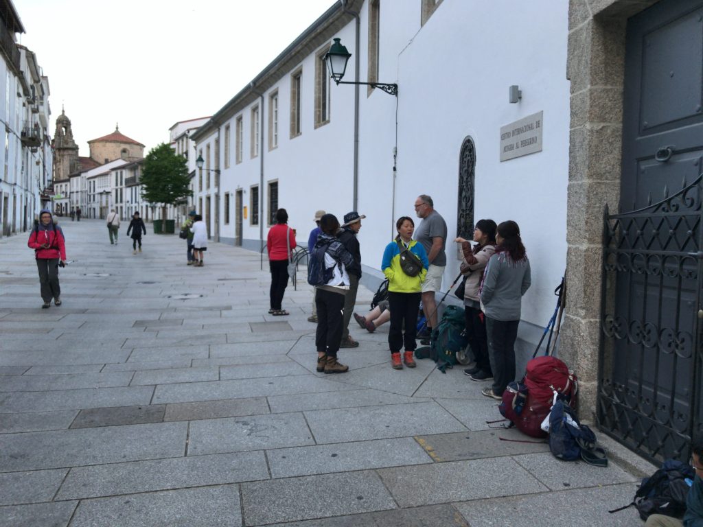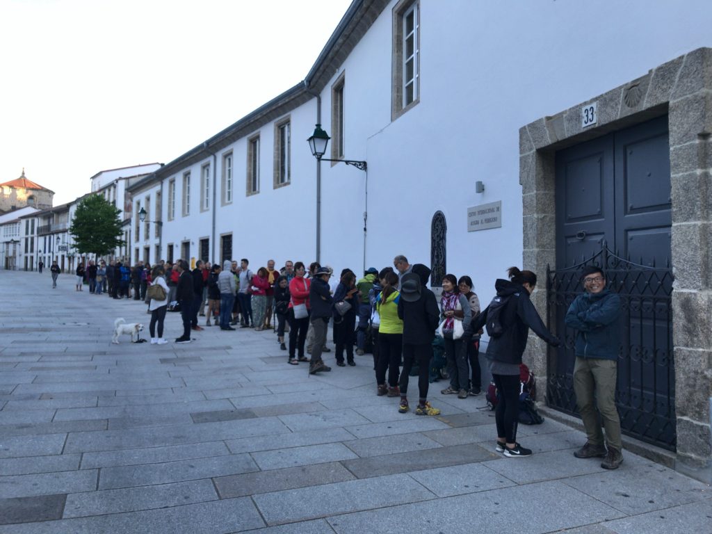 (ガイドブックには9時と記載がある)巡礼事務所が開く時刻が8時だという情報はアマンダたちから教えてもらっていたらしい。