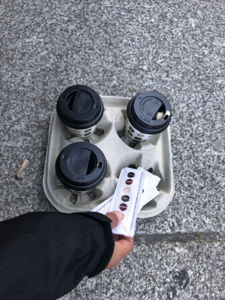 7時頃にシンがコーヒーを買ってきてくれた。寒かったのでありがたい。