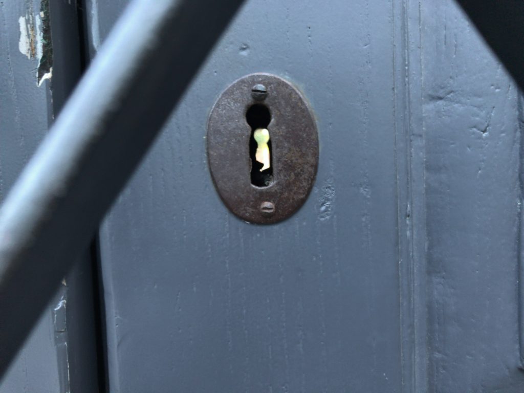 8時前に扉の向こうを鍵穴から覗き込むと、人が動いているのが見えた。