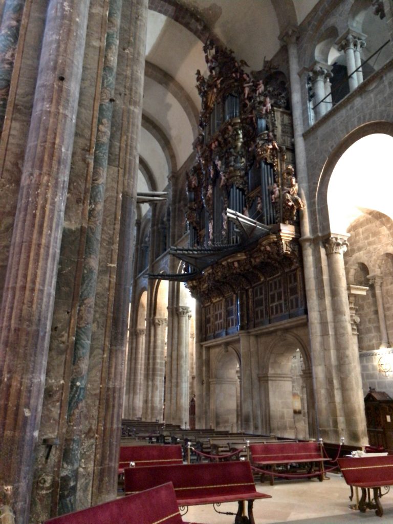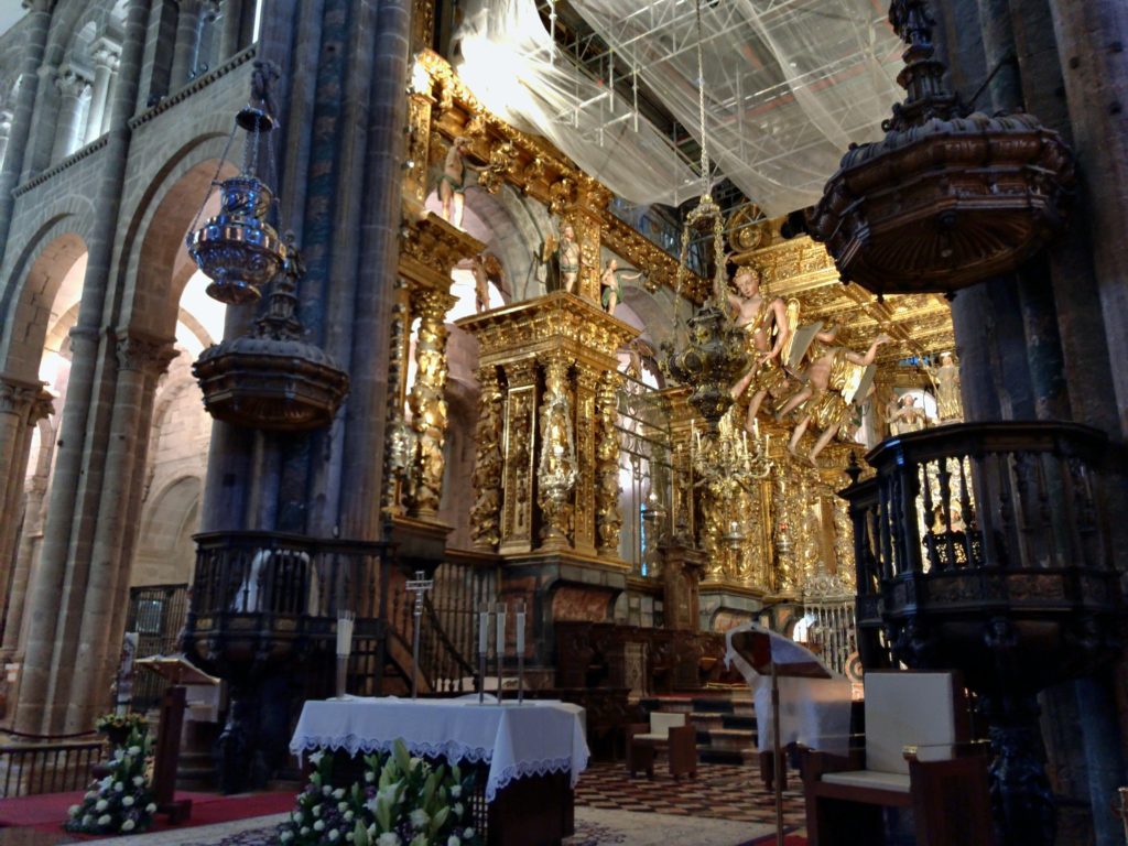 中央祭壇の上へと登る階段の先では、聖ヤコブ像に後ろから抱きつくことができるので、巡礼者はここで旅の終わりを聖ヤコブに報告する。しない人も多いだろうけど。