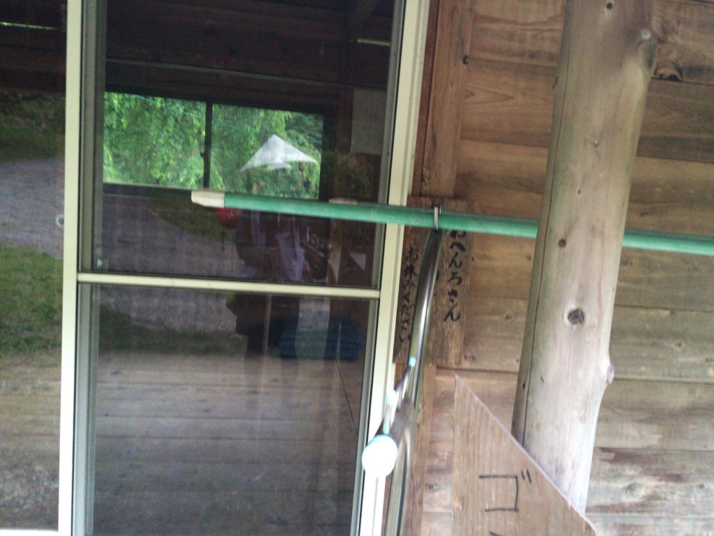 電灯はあるんだけど、スイッチがどこにもないというハプニングで電気はつけられなかった。暗くなってからはひかる君がヘッドライトを吊らしてその明かりで過ごした。(柳水庵と電線繋がっているみたいだったから、もしかしたら柳水庵にスイッチがあるのかも)