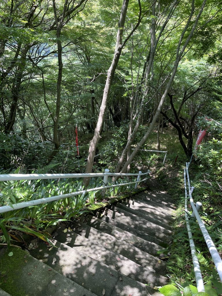 札所ではないが参拝客需要は少なくないので、こうして山間に赤い階段の参道が設置されている。