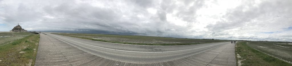 現地までは片道350kmとのこと。モン・サン・ミッシェルは日本でもかなり有名だけど、パリ観光で日数の余裕がない人が行けなかったりするのはこの距離がネックだから。そう考えると、この乗客の中にこれから800kmを徒歩で移動しようとしている人間が混ざってることはもはやドン引きされるレベル。