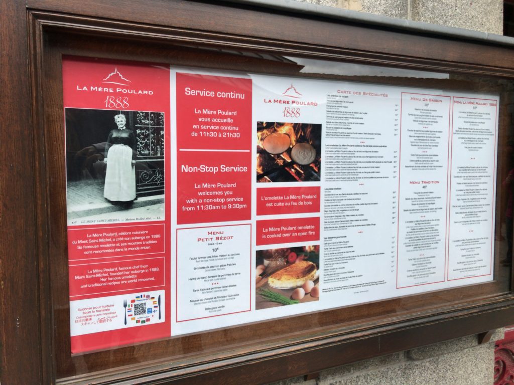 ガイドさんがモン・サン・ミッシェルのオムレツは期待するなとやんわり、遠回しに話している。他の人がどう言っても、体験することが貴重なんですといった具合に。うん、そうらしいね。