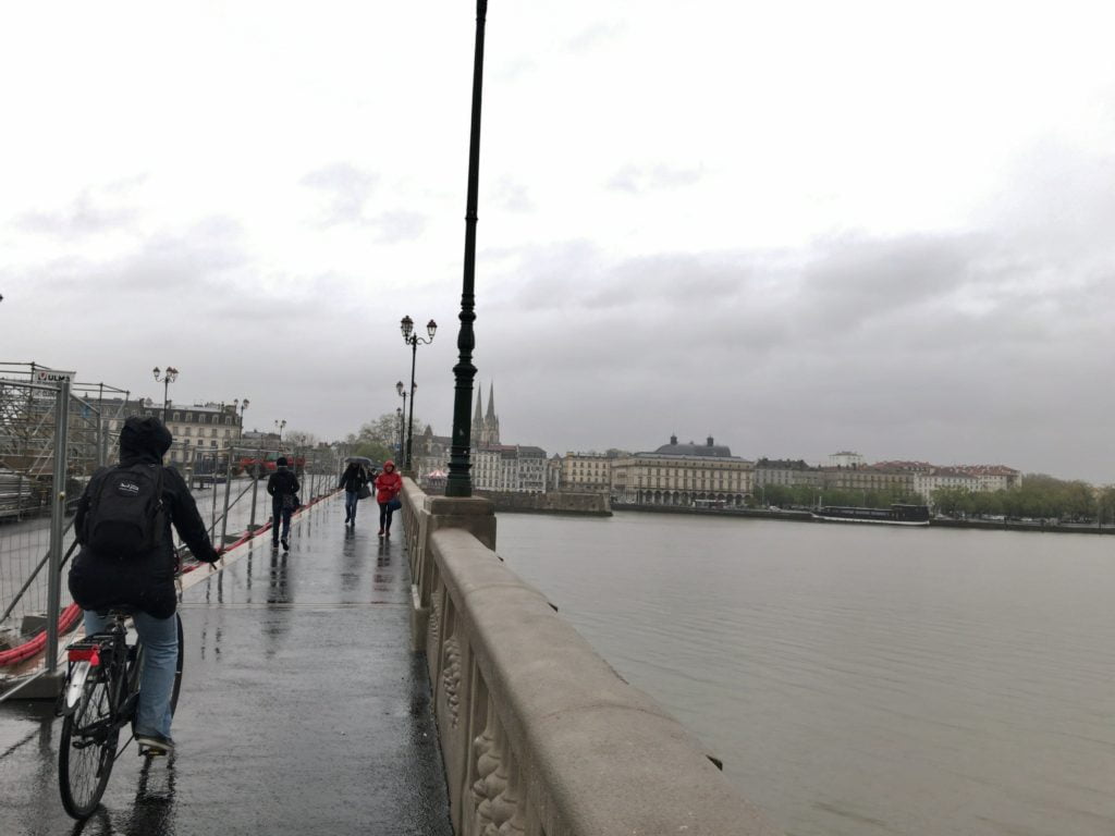 もうここまで来るとアウトドア用バックパックを背負ってる人のほとんどがバイヨンヌ経由で出発地点へと移動する人たちだろう。それゆえ、さっきのキオスクのような店の前にいた女性のように、いや、おまえこの時同じ場所にいたのか…と驚いた写真。右端で見切れてる黄色っぽいバックパックの男性がそれ。