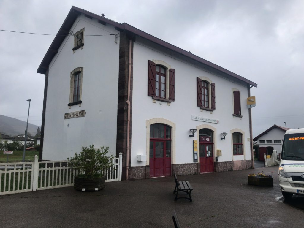 サン・ジャン・ピエ・ド・ポー駅前で乗客は全員バスから降りた。駅の中では何かの撮影をしていた。