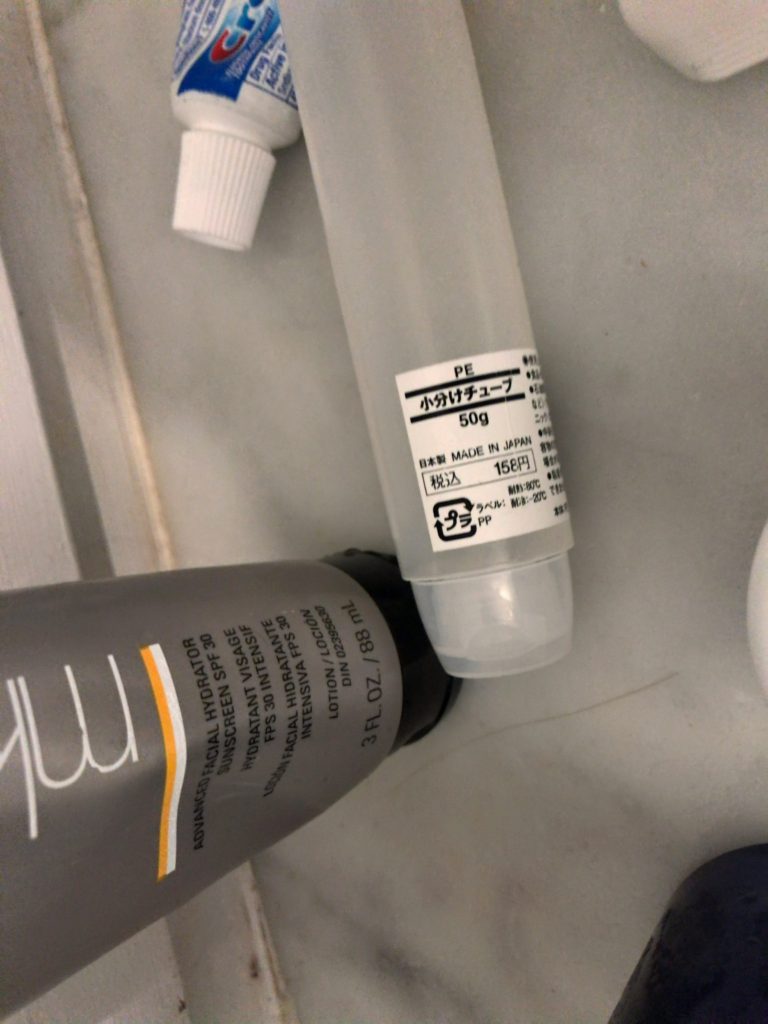 日本人が置き忘れたのか無印の小分けチューブがあった。